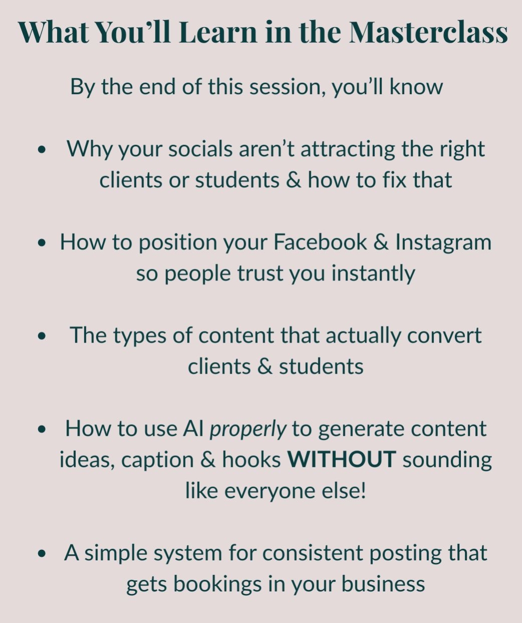 50 minute Masterclass with the exact strategies & content to get booked!